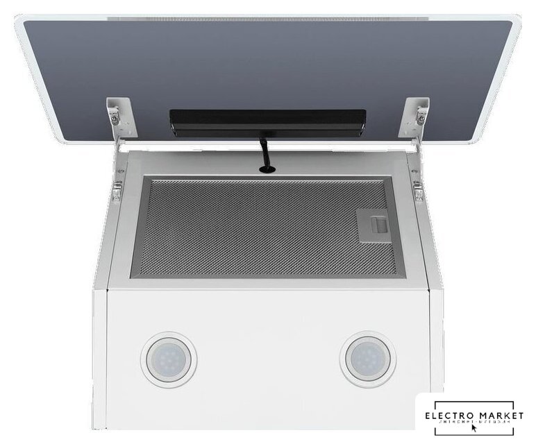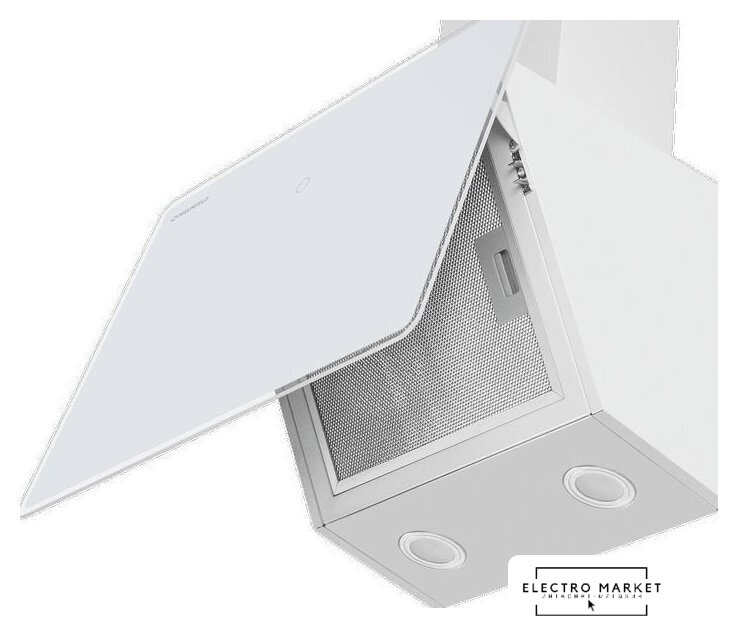 конструкция наклонная, монтаж настенный, ширина 59.5 см, управление сенсорное, цвет белый/нержавеющая сталь