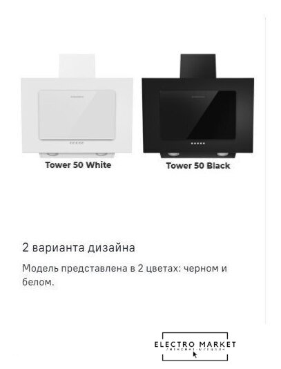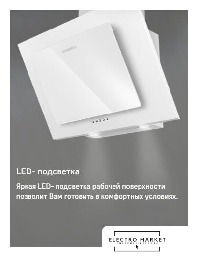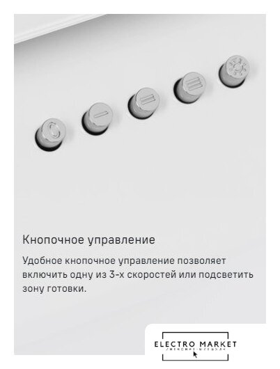 конструкция купольная, монтаж настенный, ширина 50 см, управление механическое/кнопочное, производительность вытяжки 450 м³/ч, производительность мотора 900 м³/ч, цвет белый