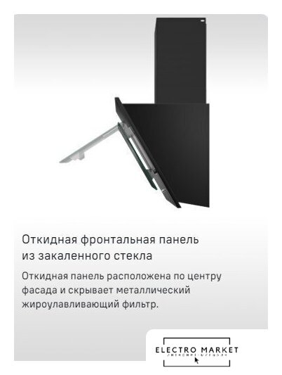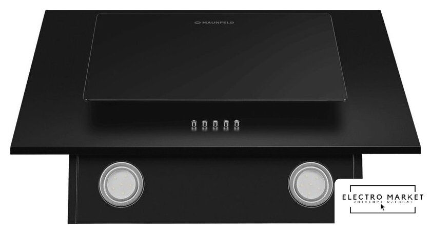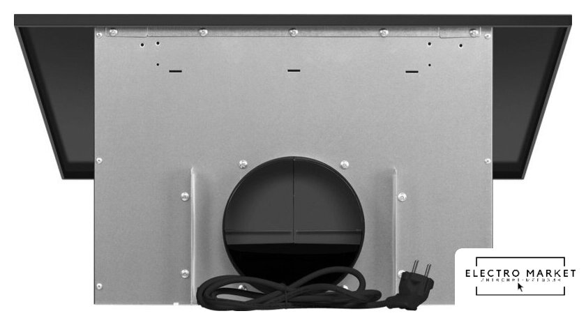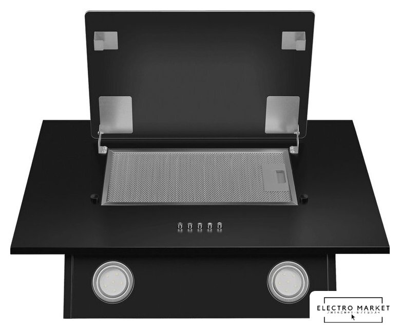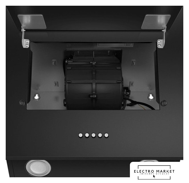 конструкция скрытая, монтаж для встраивания, ширина 53 см, управление механическое/кнопочное, производительность мотора 870 м³/ч, цвет черный