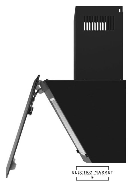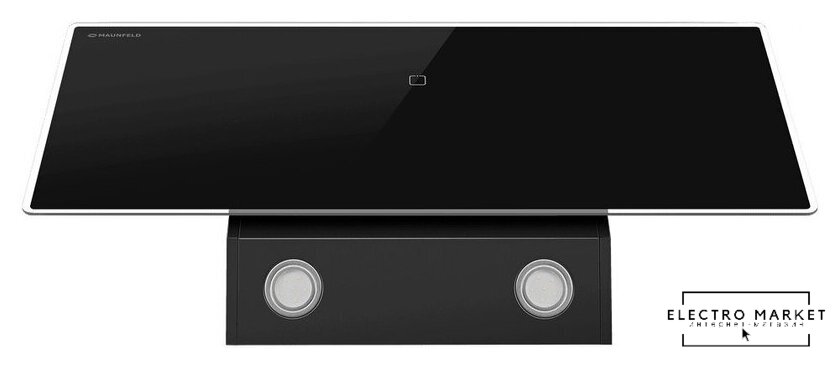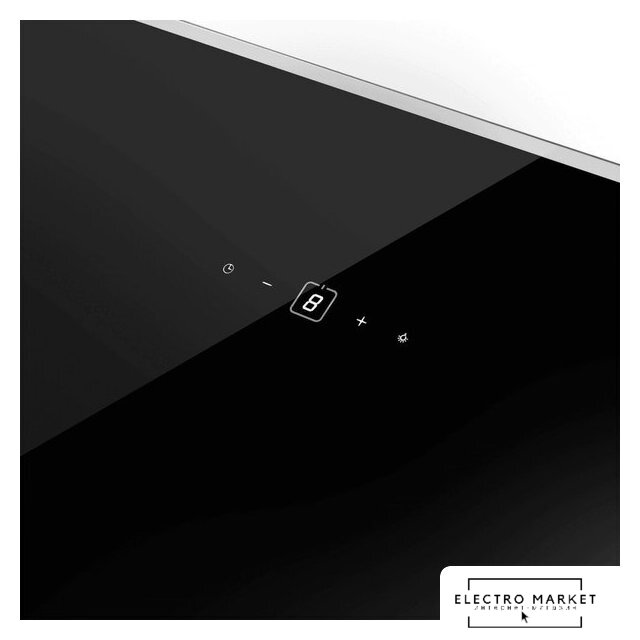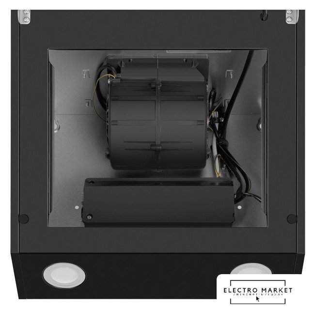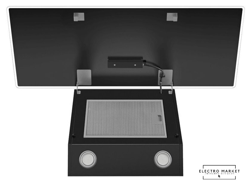 конструкция скрытая, монтаж для встраивания, ширина 52 см, управление электронное/кнопочное, производительность мотора 800 м³/ч, цвет черный