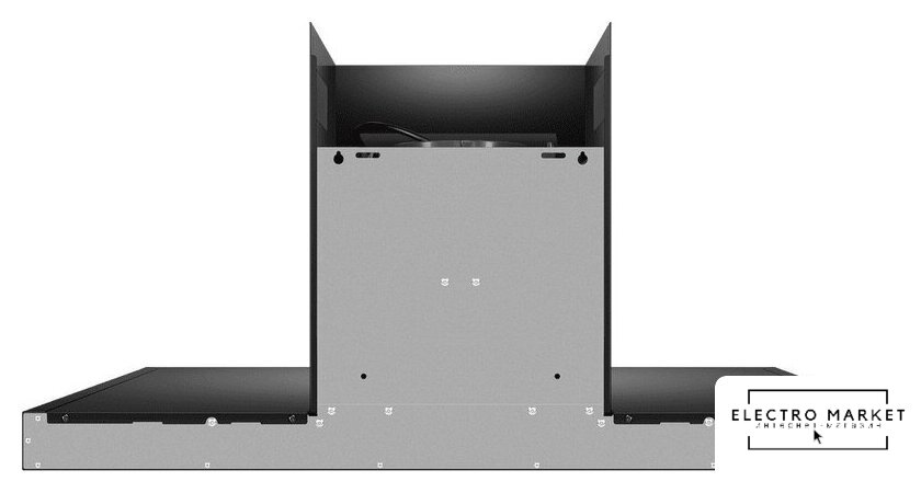 конструкция коробчатая, монтаж настенный, ширина 38 см, управление механическое/кнопочное, производительность мотора 1000 м³/ч, цвет черный