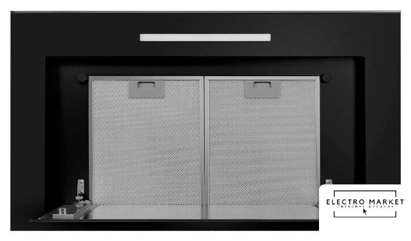 конструкция скрытая, монтаж для встраивания, ширина 89.4 см, управление поворотный переключатель, производительность вытяжки 620 м³/ч, цвет черный
