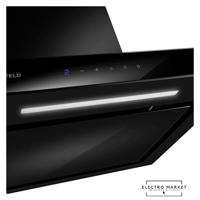 конструкция наклонная, монтаж настенный, ширина 60 см, управление сенсорное, производительность мотора 1270 м³/ч, цвет черный