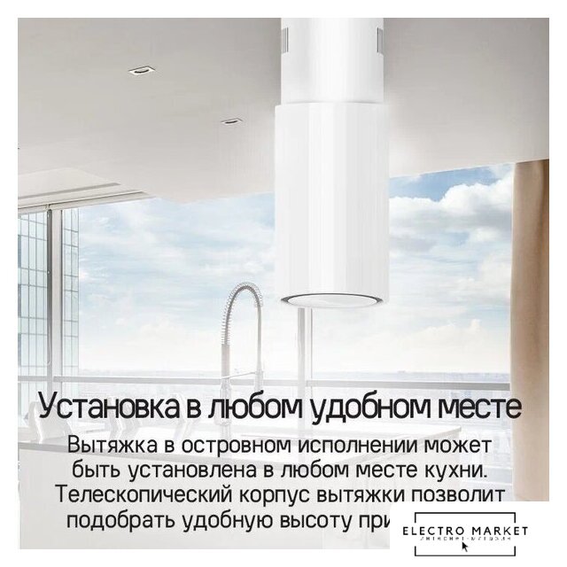 конструкция коробчатая, монтаж островной, ширина 38 см, управление сенсорное, производительность мотора 1270 м³/ч, цвет белый
