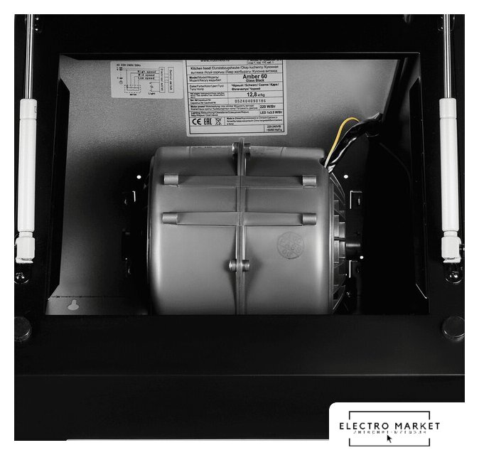 конструкция скрытая, монтаж для встраивания, ширина 52 см, управление сенсорное, цвет черный
