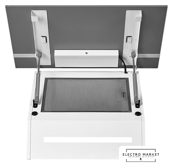конструкция коробчатая, монтаж настенный, ширина 40 см, управление механическое/кнопочное, производительность мотора 1100 м³/ч, цвет белый