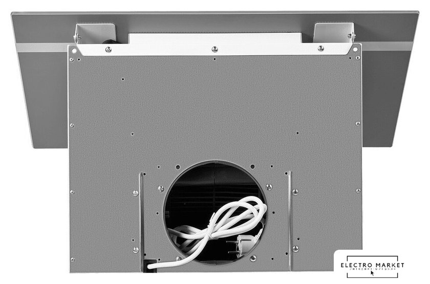 конструкция Т-образная, монтаж настенный, ширина 59.8 см, управление механическое/кнопочное, производительность вытяжки 368 м³/ч, производительность мотора 700 м³/ч, цвет нержавеющая сталь
