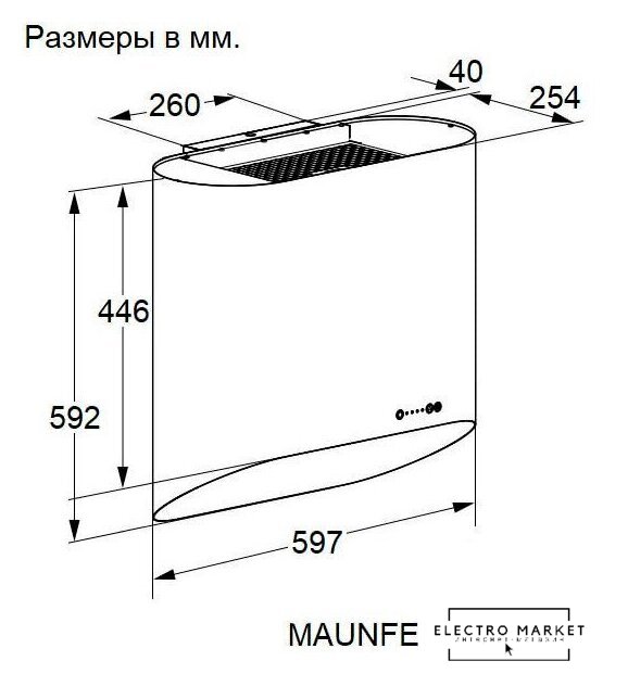 конструкция наклонная, монтаж настенный, ширина 60 см, управление сенсорное, цвет черный