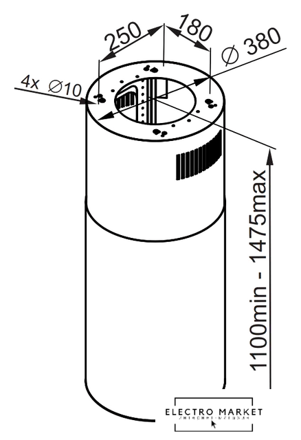 конструкция коробчатая, монтаж островной, ширина 38.3 см, управление механическое/кнопочное, производительность мотора 1050 м³/ч, цвет черный