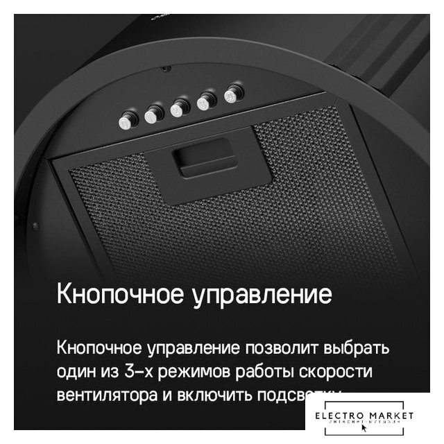конструкция скрытая, монтаж для встраивания, ширина 54 см, управление механическое/кнопочное, производительность вытяжки 450 м³/ч, цвет черный