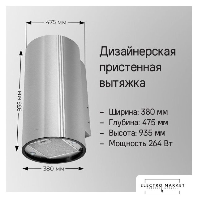 конструкция коробчатая, монтаж настенный, ширина 59.8 см, управление сенсорное, производительность вытяжки 495 м³/ч, цвет черный