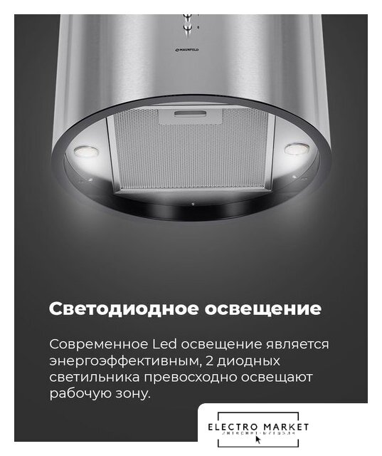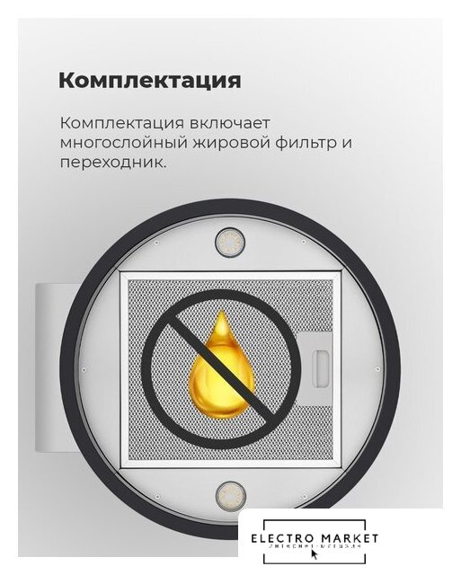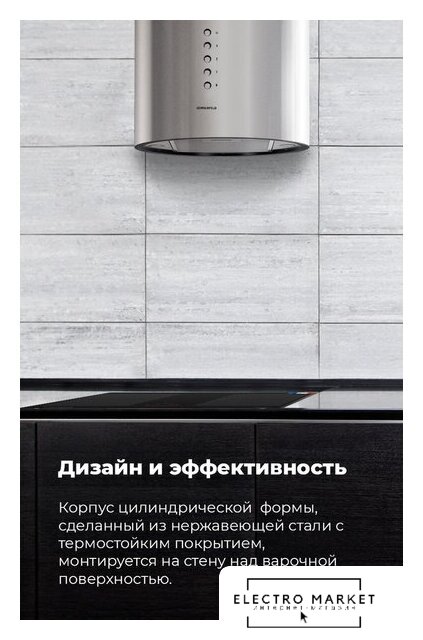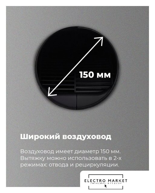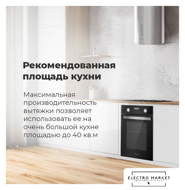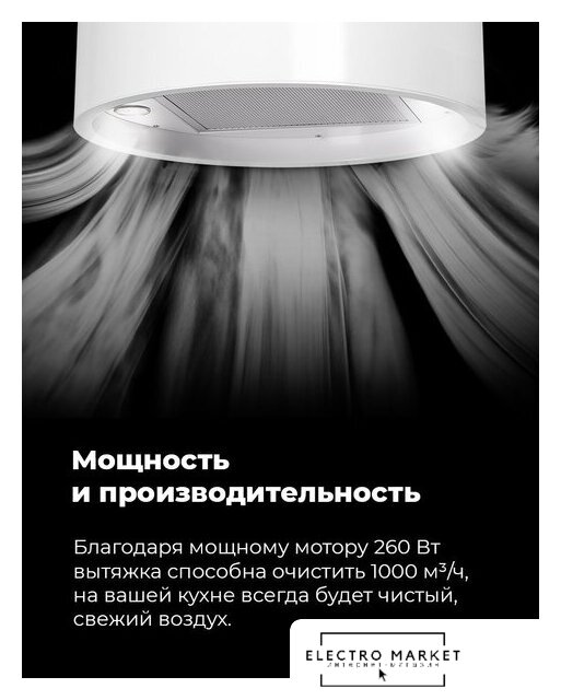 конструкция купольная, монтаж островной, управление электронное/кнопочное, производительность мотора 1050 м³/ч, ширина 90 см
