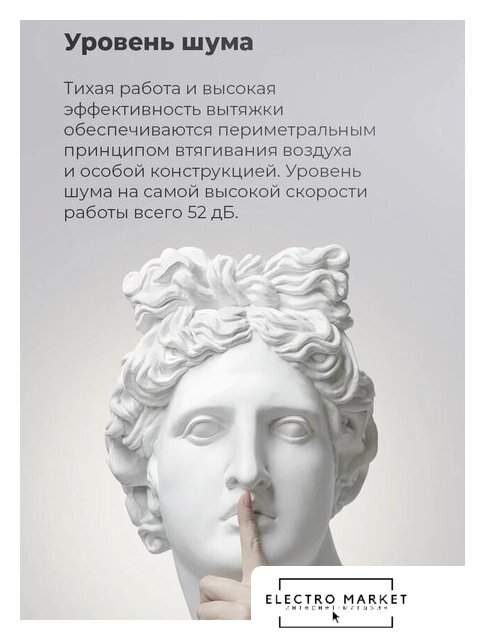 конструкция наклонная, монтаж настенный, ширина 59.8 см, управление сенсорное, производительность вытяжки 559 м³/ч, цвет белый