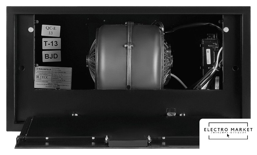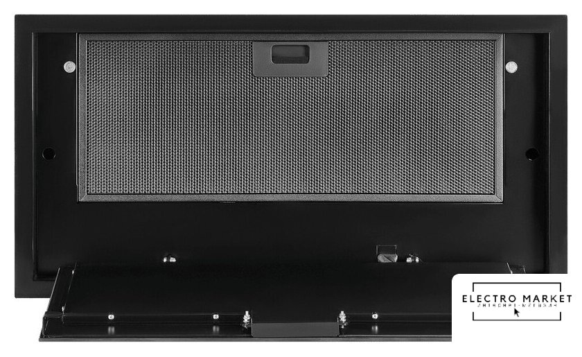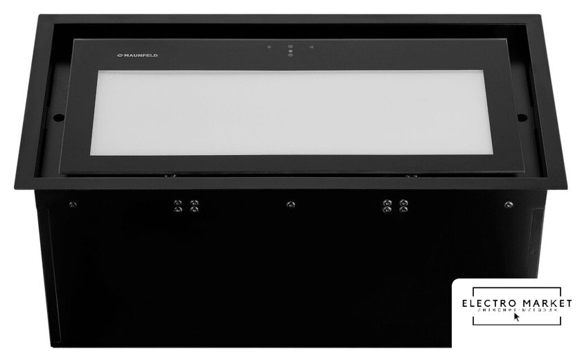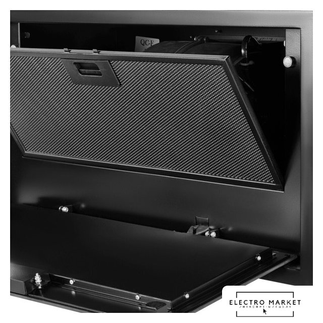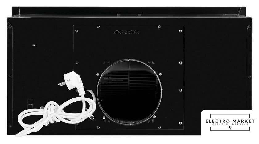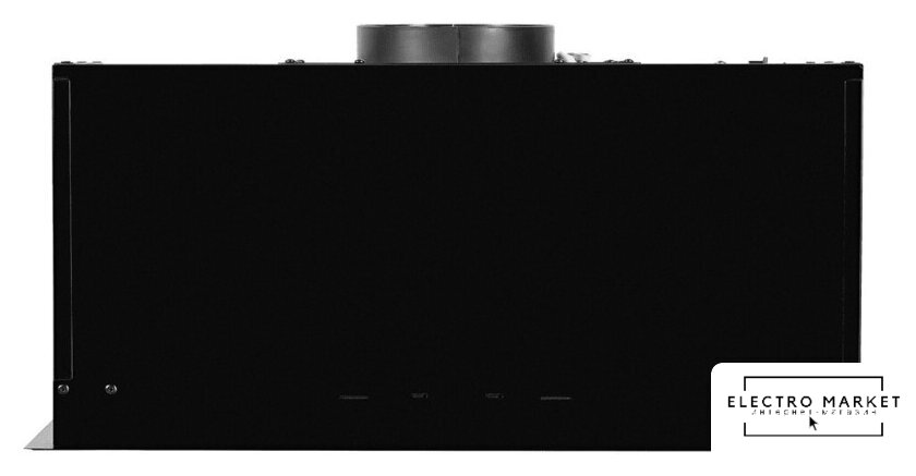 конструкция коробчатая, монтаж настенный, ширина 38 см, управление электронное/кнопочное, производительность мотора 1000 м³/ч, цвет черный