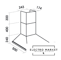 конструкция купольная, монтаж настенный, ширина 50 см, управление электронное/кнопочное, производительность мотора 650 м³/ч, цвет нержавеющая сталь
