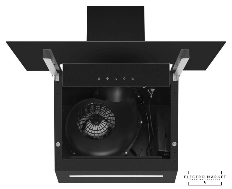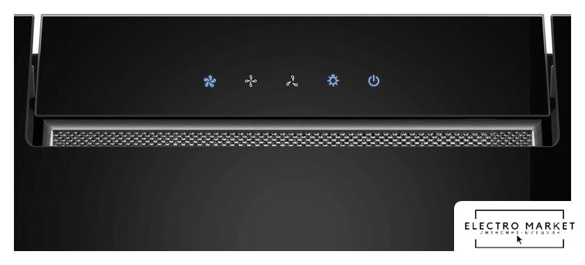 конструкция скрытая, монтаж для встраивания, ширина 59.8 см, управление сенсорное, производительность мотора 1030 м³/ч, цвет черный