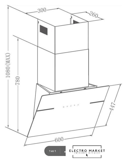 конструкция Т-образная, монтаж настенный, управление сенсорное, производительность мотора 1000 м³/ч, ширина 60 см