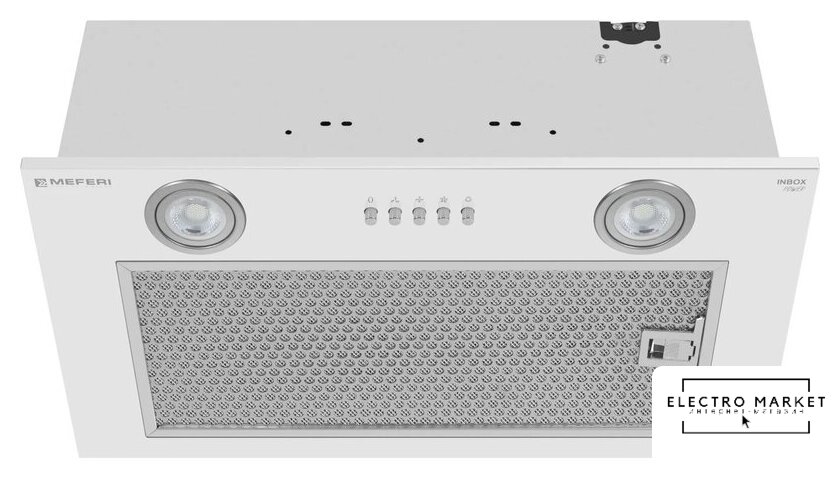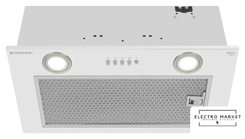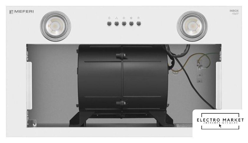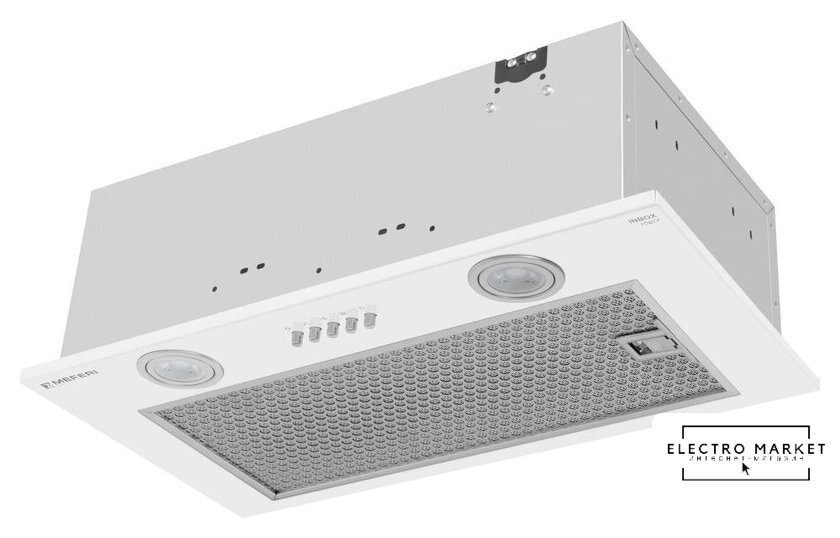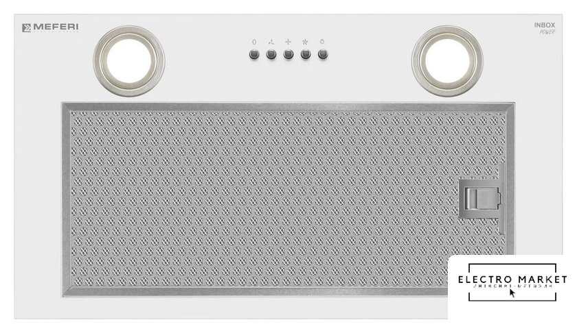 конструкция скрытая, монтаж для встраивания, ширина 72.5 см, управление механическое/кнопочное, производительность мотора 1050 м³/ч, цвет белый