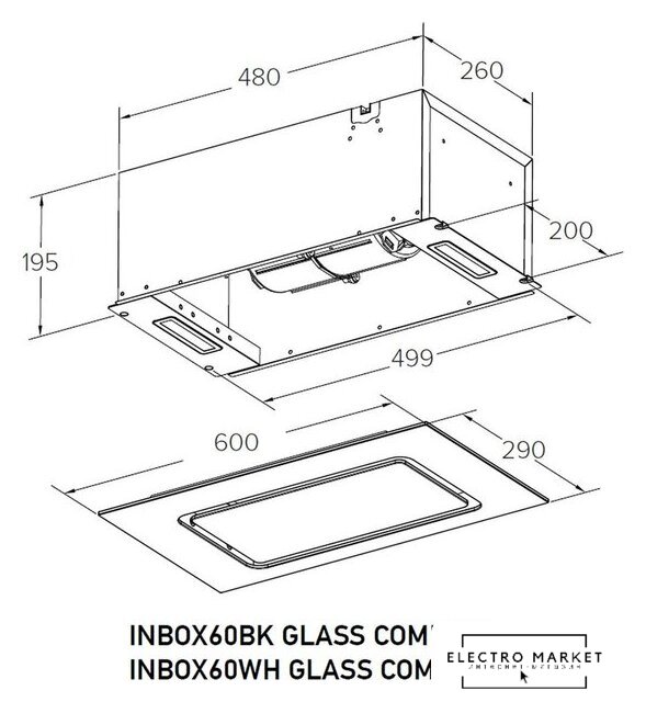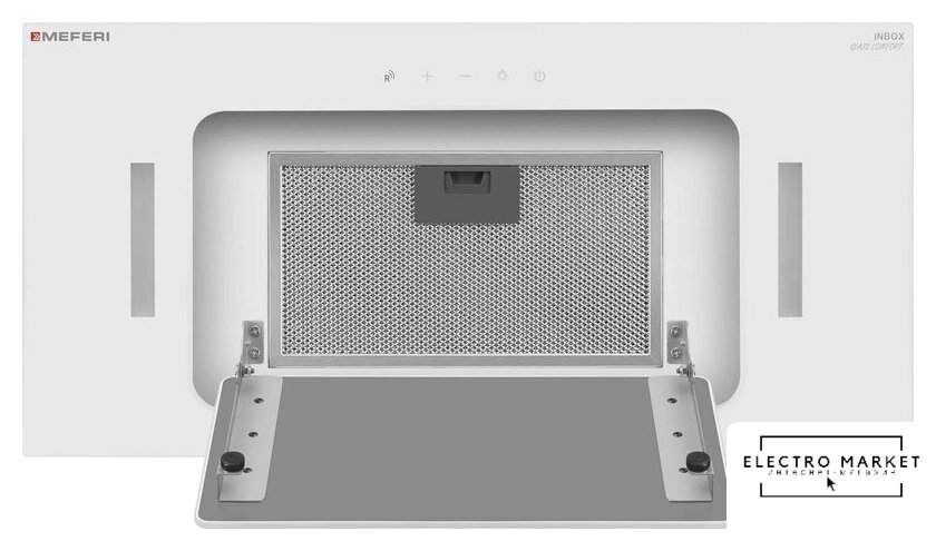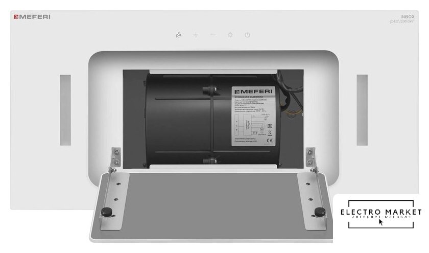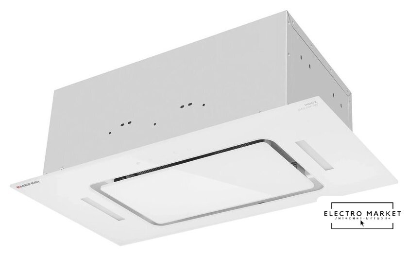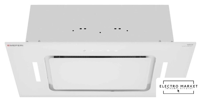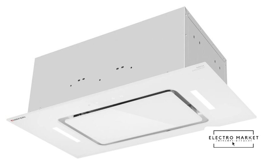 конструкция скрытая, монтаж для встраивания, ширина 59.6 см, управление сенсорное/жестами, производительность мотора 1260 м³/ч, цвет белый