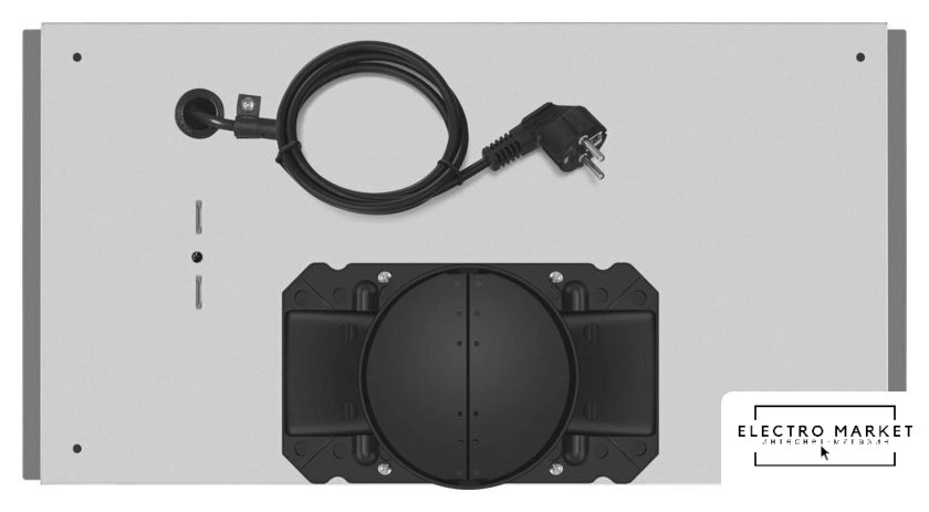 конструкция Т-образная, монтаж настенный, ширина 60 см, управление механическое/поворотный переключатель, производительность мотора 1050 м³/ч, цвет черный