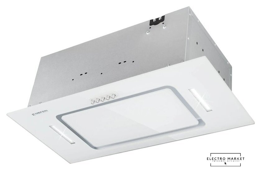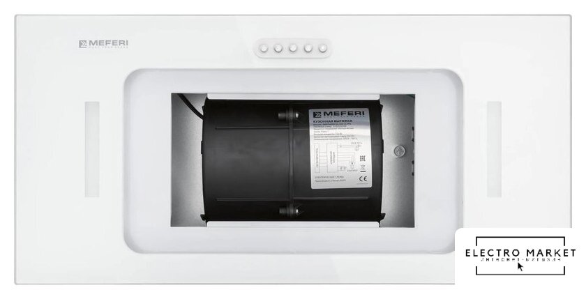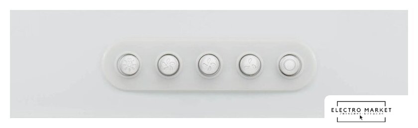конструкция наклонная, монтаж настенный, ширина 60 см, управление сенсорное, производительность мотора 650 м³/ч, цвет белый