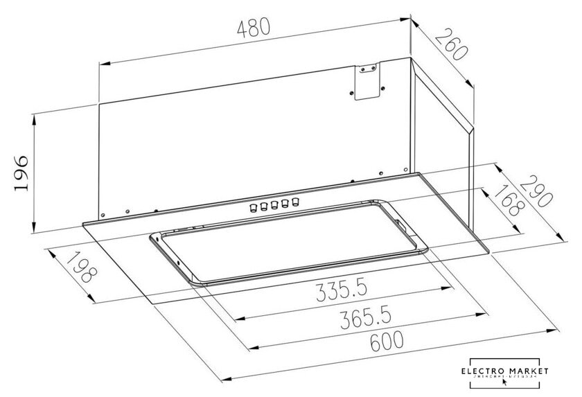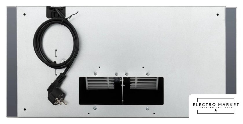 конструкция коробчатая, монтаж настенный, ширина 59 см, управление электронное/кнопочное, производительность мотора 700 м³/ч, цвет черный