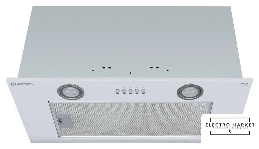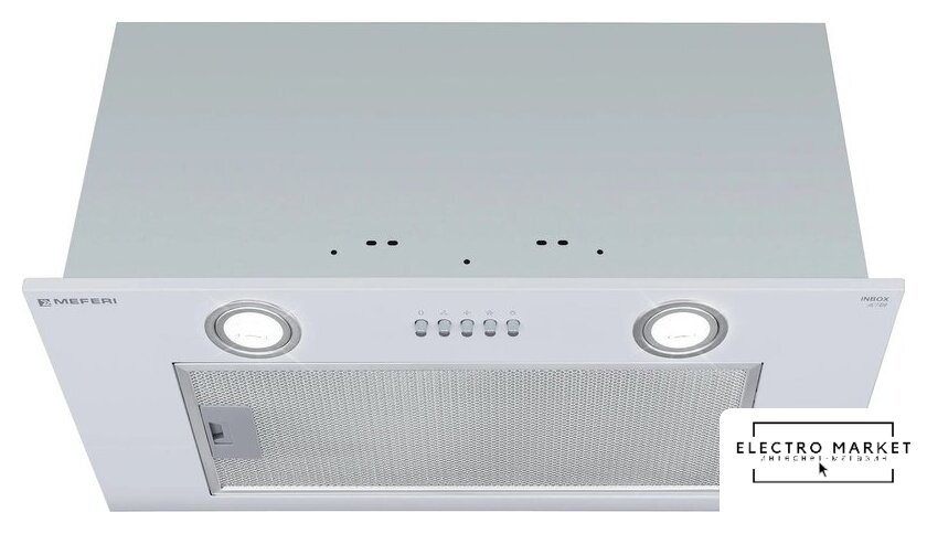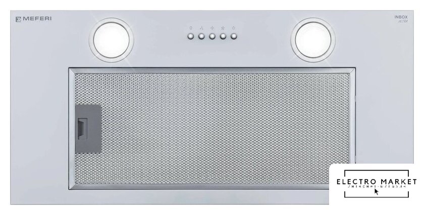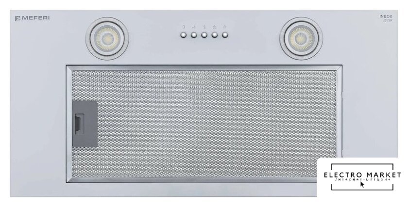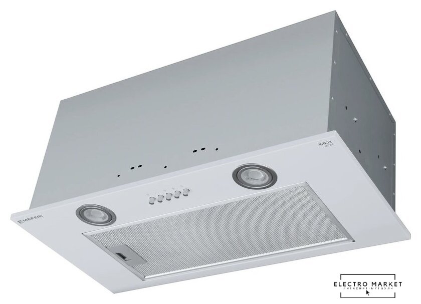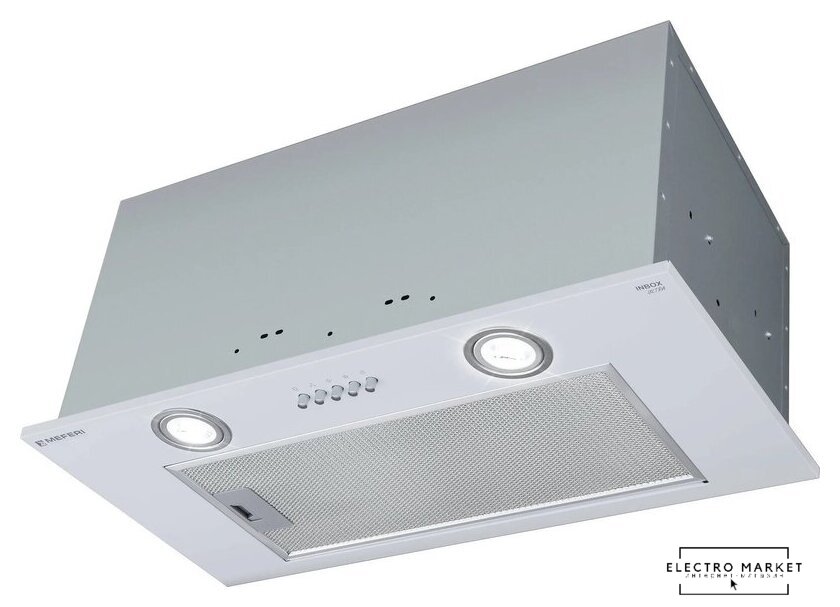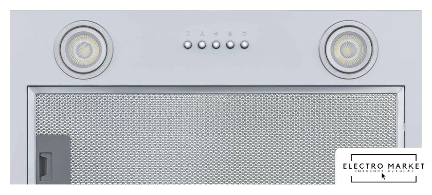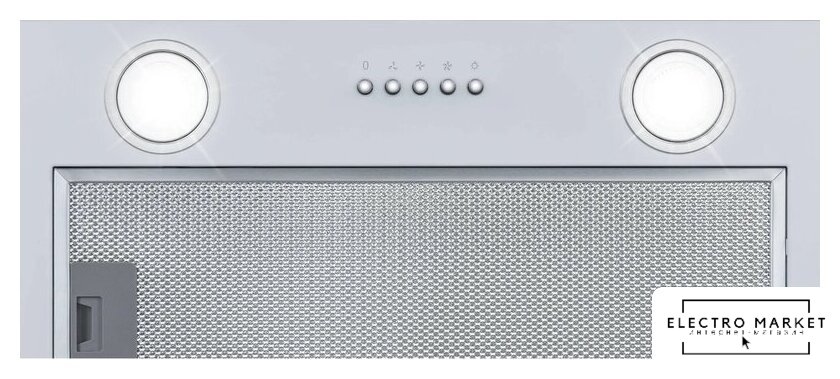 конструкция скрытая, монтаж для встраивания, ширина 52 см, управление механическое/кнопочное, производительность мотора 850 м³/ч, цвет серый