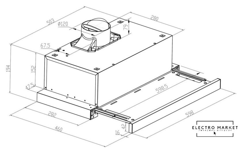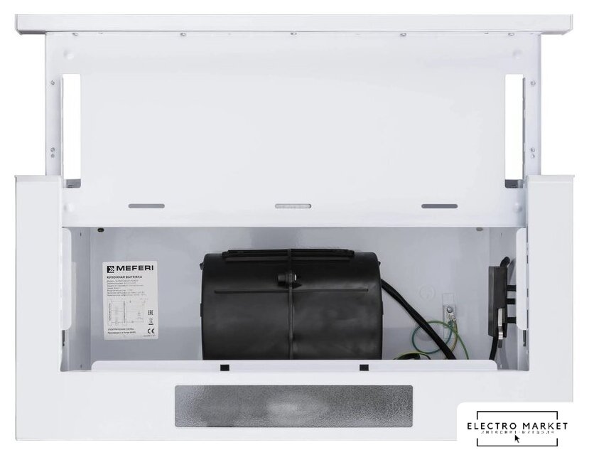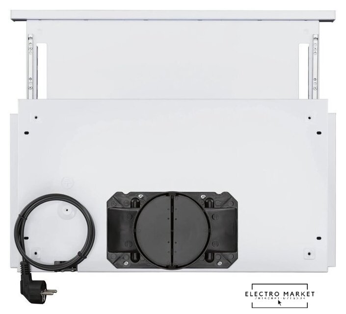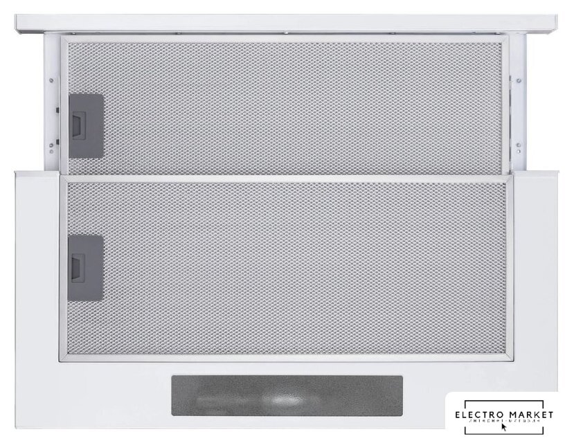 конструкция скрытая, монтаж для встраивания, ширина 69.6 см, управление механическое/кнопочное, производительность мотора 1050 м³/ч, цвет черный