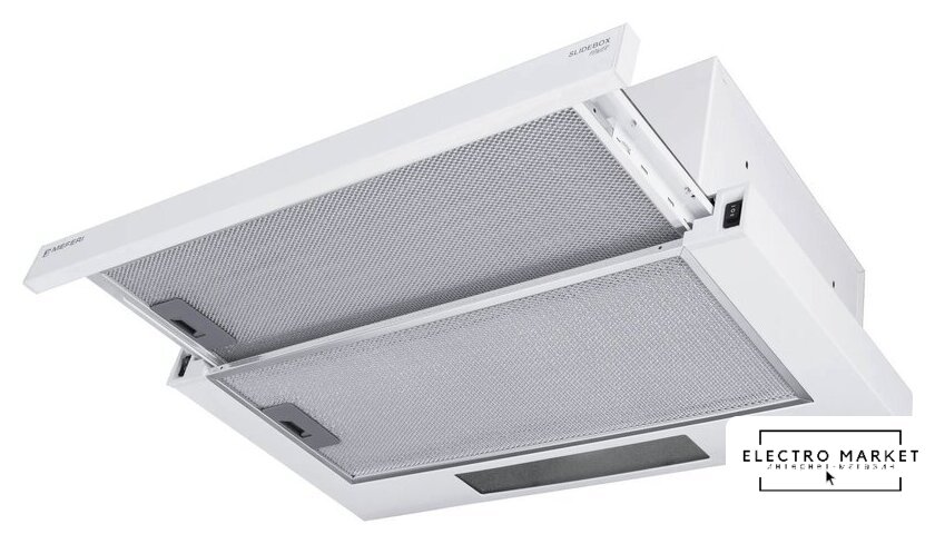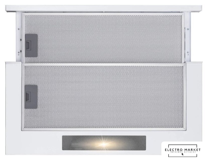 конструкция телескопическая, монтаж для встраивания, ширина 59.5 см, управление механическое/кнопочное, производительность мотора 650 м³/ч, цвет черный
