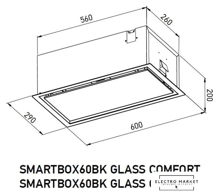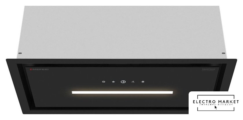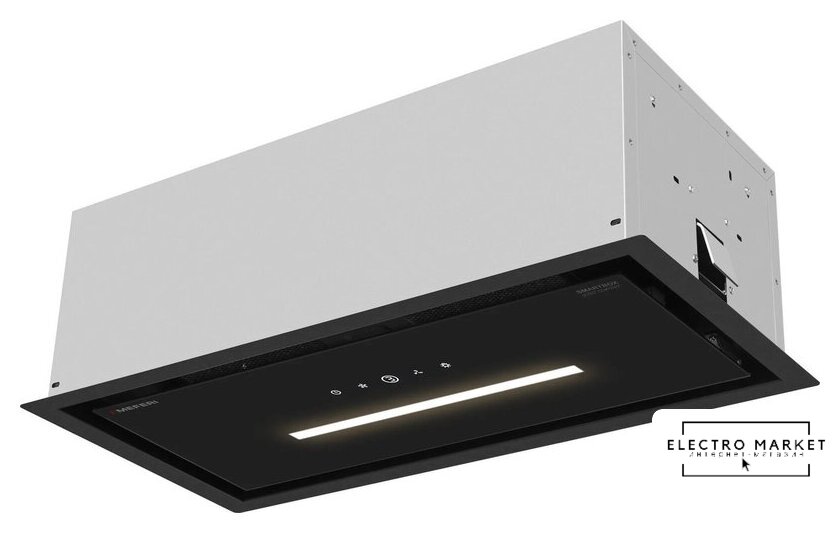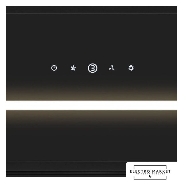 конструкция наклонная, монтаж настенный, ширина 60 см, управление сенсорное, производительность мотора 1000 м³/ч, цвет черный
