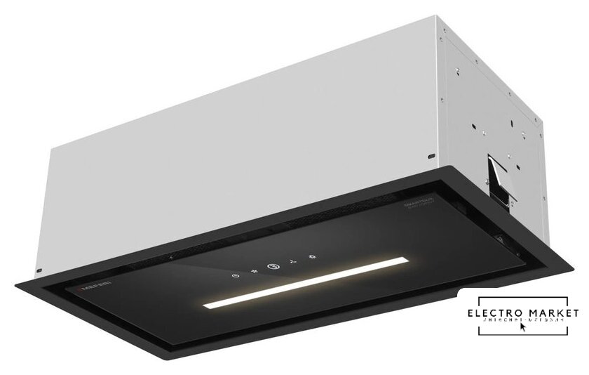 конструкция наклонная, монтаж настенный, ширина 59.5 см, управление сенсорное, производительность мотора 1000 м³/ч, цвет черный