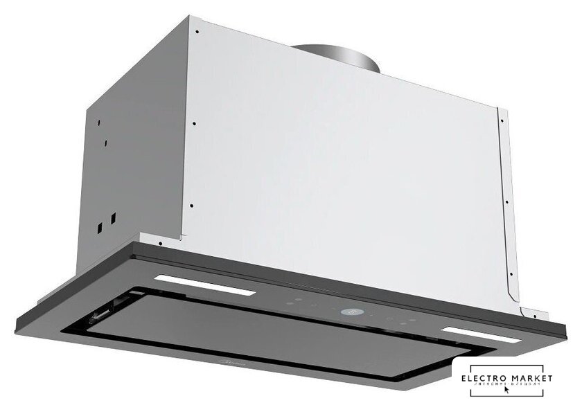 конструкция скрытая, монтаж для встраивания, ширина 69.8 см, управление сенсорное/дистанционное, производительность вытяжки 850 м³/ч, производительность мотора 1050 м³/ч, цвет серый