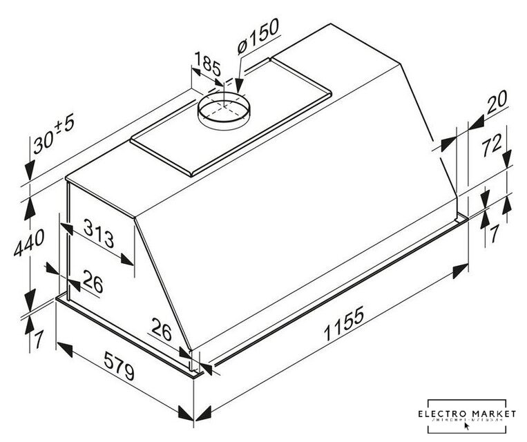| Производительность отвода в интенсивном режиме | 650 куб. м/ч |