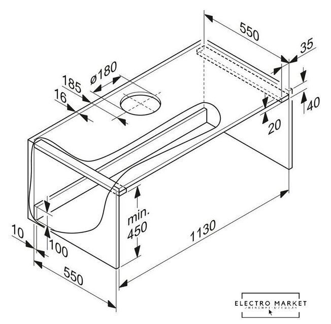 конструкция наклонная, монтаж настенный, ширина 90 см, управление электронное, цвет нержавеющая сталь