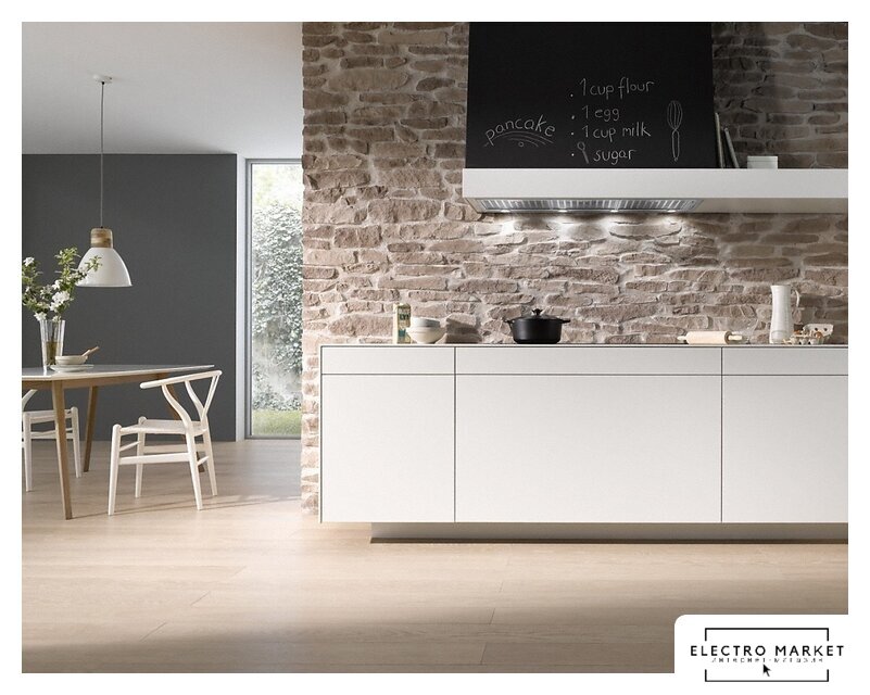 конструкция Т-образная, монтаж настенный, ширина 89.8 см, управление электронное/кнопочное, производительность вытяжки 410 м³/ч, производительность мотора 1200 м³/ч, цвет белый