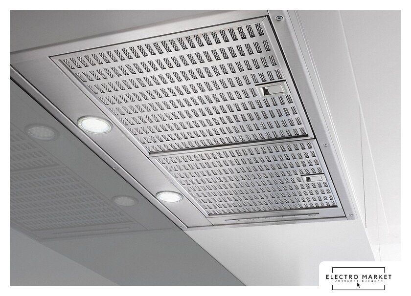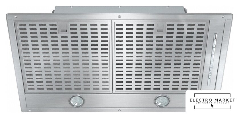 конструкция скрытая, монтаж для встраивания, ширина 52.3 см, управление электронное/кнопочное, производительность вытяжки 600 м³/ч, производительность мотора 1300 м³/ч, цвет черный