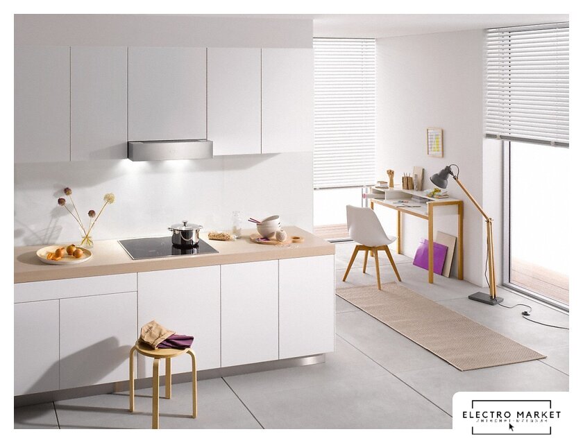 конструкция скрытая, монтаж для встраивания, ширина 83.6 см, управление электронное/кнопочное, производительность вытяжки 426 м³/ч, цвет нержавеющая сталь