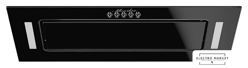 конструкция скрытая, монтаж для встраивания, ширина 52 см, управление механическое/кнопочное, производительность мотора 850 м³/ч, цвет белый