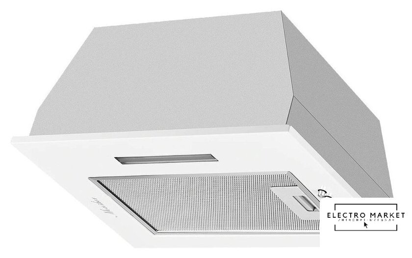 конструкция наклонная, монтаж настенный, ширина 59 см, управление электронное/сенсорное, производительность мотора 650 м³/ч, цвет белый
