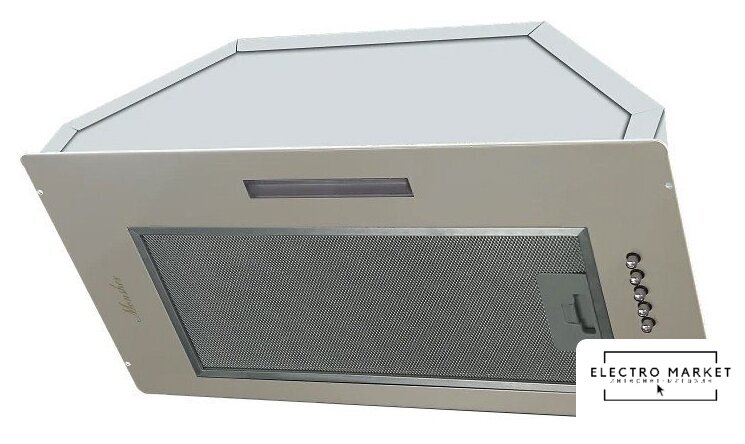 конструкция скрытая, монтаж для встраивания, ширина 52 см, управление механическое/кнопочное, производительность мотора 650 м³/ч, цвет белый