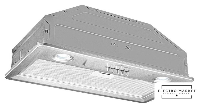 конструкция скрытая, монтаж для встраивания, ширина 49.5 см, управление механическое/кнопочное, производительность мотора 710 м³/ч, цвет черный