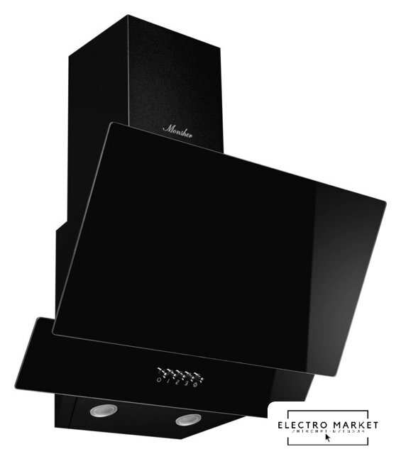 конструкция купольная, монтаж настенный, ширина 60 см, управление механическое/кнопочное, производительность мотора 500 м³/ч, цвет черный