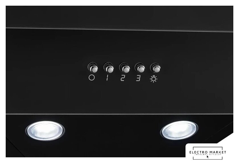 конструкция телескопическая, монтаж для встраивания, ширина 50 см, управление механическое/кнопочное, производительность мотора 600 м³/ч, цвет черный