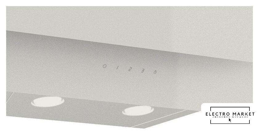 конструкция купольная, монтаж настенный, ширина 59.7 см, управление слайдерное, производительность мотора 650 м³/ч, цвет бежевый