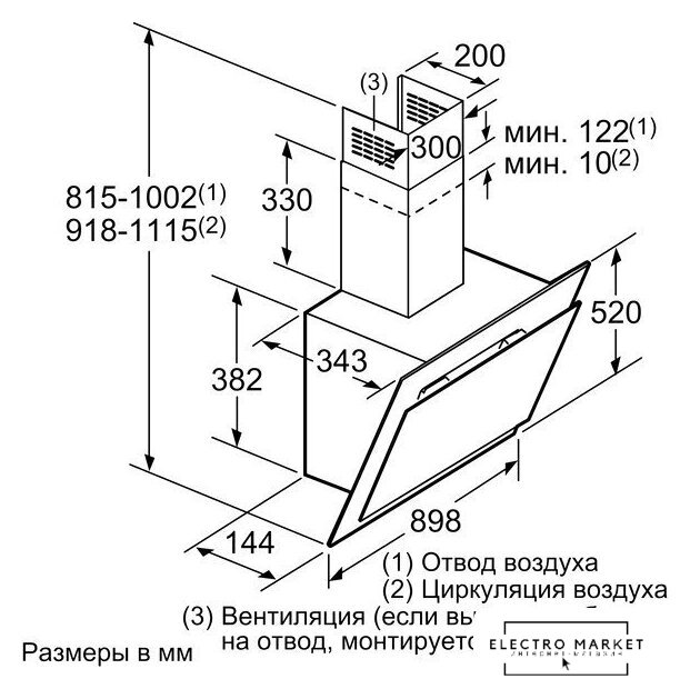 конструкция наклонная, монтаж настенный, ширина 90 см, управление электронное, цвет нержавеющая сталь