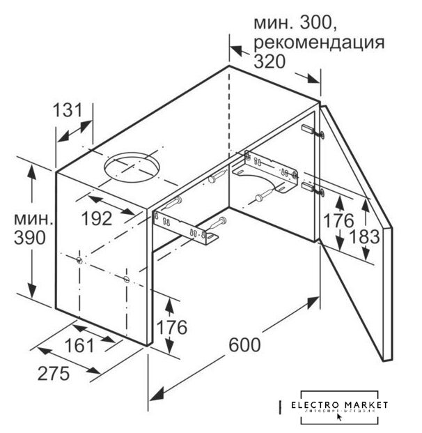 | Минимальная производительность отвода | 280 куб. м/ч |