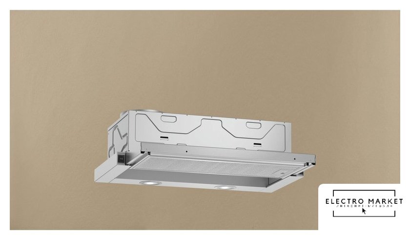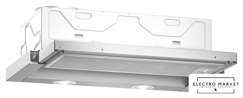 конструкция скрытая, монтаж для встраивания, ширина 71.4 см, управление электронное/кнопочное, производительность вытяжки 550 м³/ч, производительность мотора 1050 м³/ч, цвет серебристый/серый