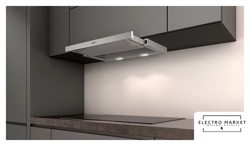 конструкция Т-образная, монтаж настенный, ширина 89 см, управление сенсорное, производительность мотора 1000 м³/ч, цвет нержавеющая сталь/черный
