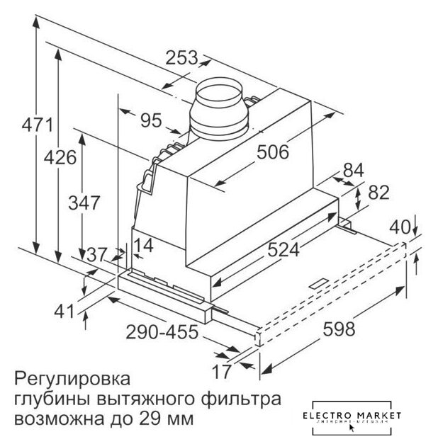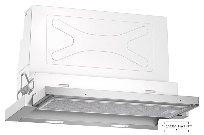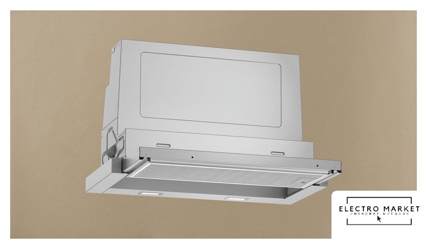 конструкция скрытая, монтаж для встраивания, ширина 89.4 см, управление поворотный переключатель, производительность вытяжки 370 м³/ч, производительность мотора 750 м³/ч, цвет нержавеющая сталь