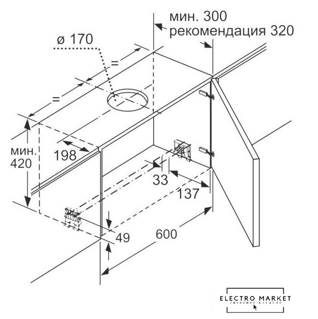 | Минимальная производительность отвода | 220 куб. м/ч |